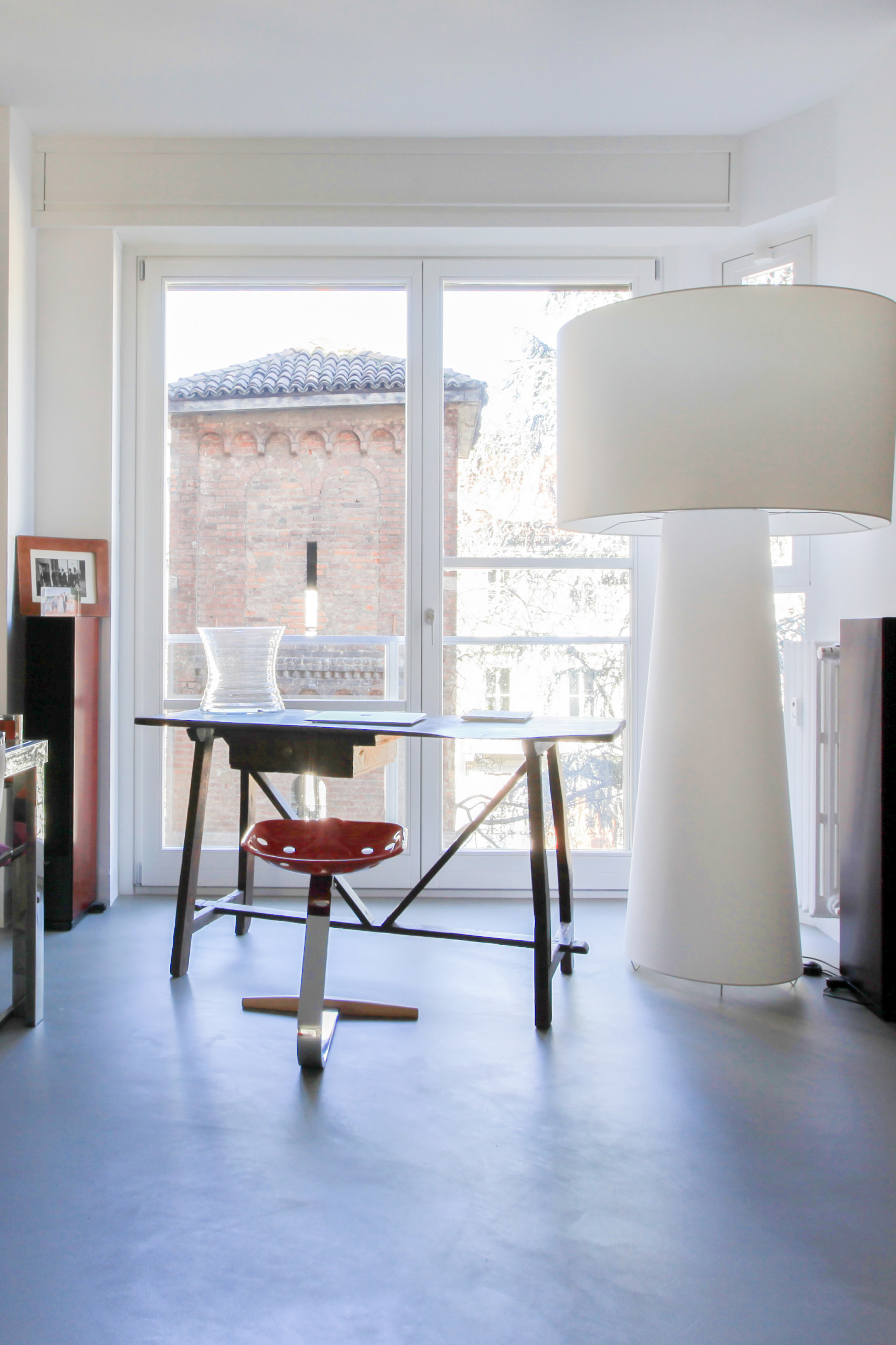 «Si vede il campanile di quella che fu la Chiesa della Santissima Trinità. Nella zona c’era anche un convento, costruito nell’anno Mille. Il campanile apparteneva alla chiesa e l’intera struttura apparteneva alla curia. Fu demolita per far posto agli edifici residenziali nell’ambito dei progetti urbanistici realizzati negli anni Sessanta; poi la chiesa è stata riedificata a poca distanza», raccontano Daria e Pietro. Il campanile rimane ed è ben visibile in tutta la sua imponenza nel giardino dell’edificio. Daria mi racconta che la prima volta che entrò nella casa, si innamorò di questa vista. E il giardino sotto casa è collocato in un’area estremamente silenziosa per essere nel pieno centro di Milano. Non si potrebbe chiedere di più.