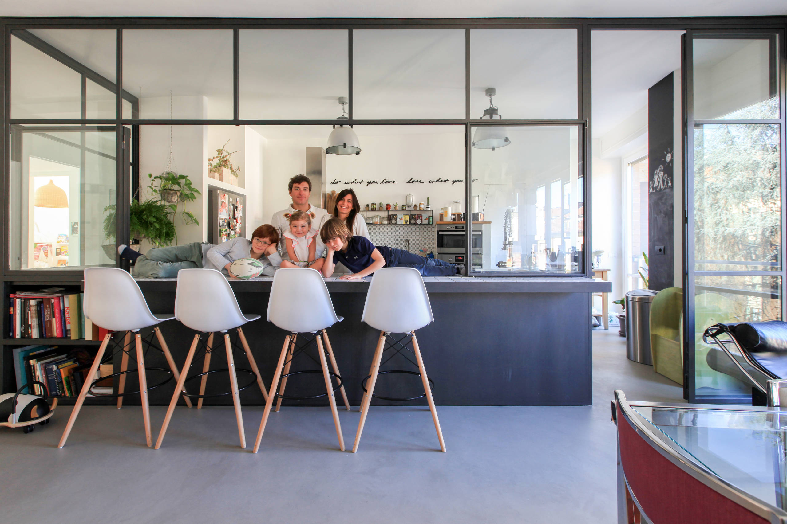 Pietro e Daria hanno cercato questa casa per quasi due anni. La loro intenzione era trovare un luogo più vicino alla scuola frequentata dai figli e creare la casa ideale per la loro famiglia. Poteva essere una casa d’epoca, magari col terrazzo. Nel 2015 hanno trovato questo spazio trasformandolo in un gioiello, realizzando la casa che volevano e creando un luogo felice per far crescere la loro famiglia.