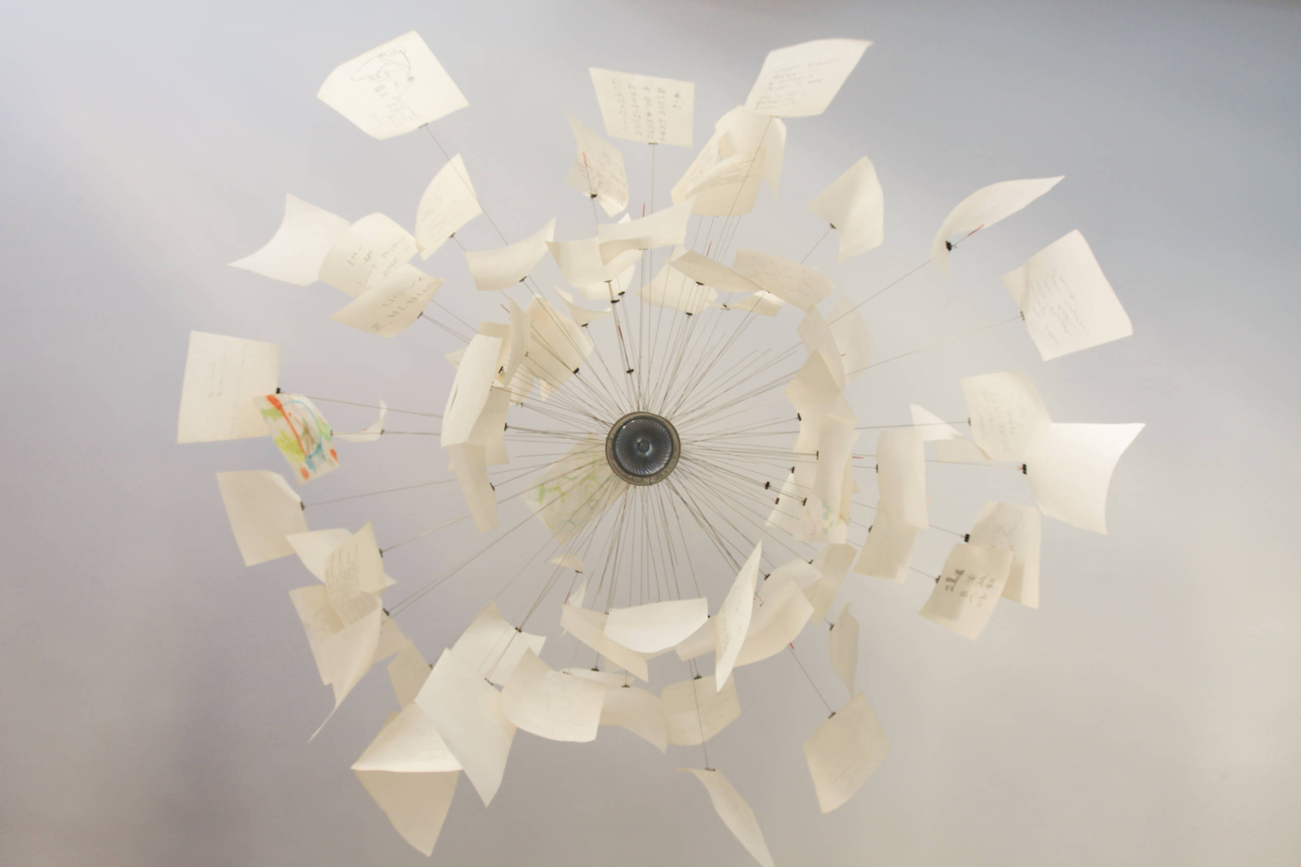 Lampada a sospensione: Sosia di Castaldi; vetrata realizzata su misura dall’officina Bogani