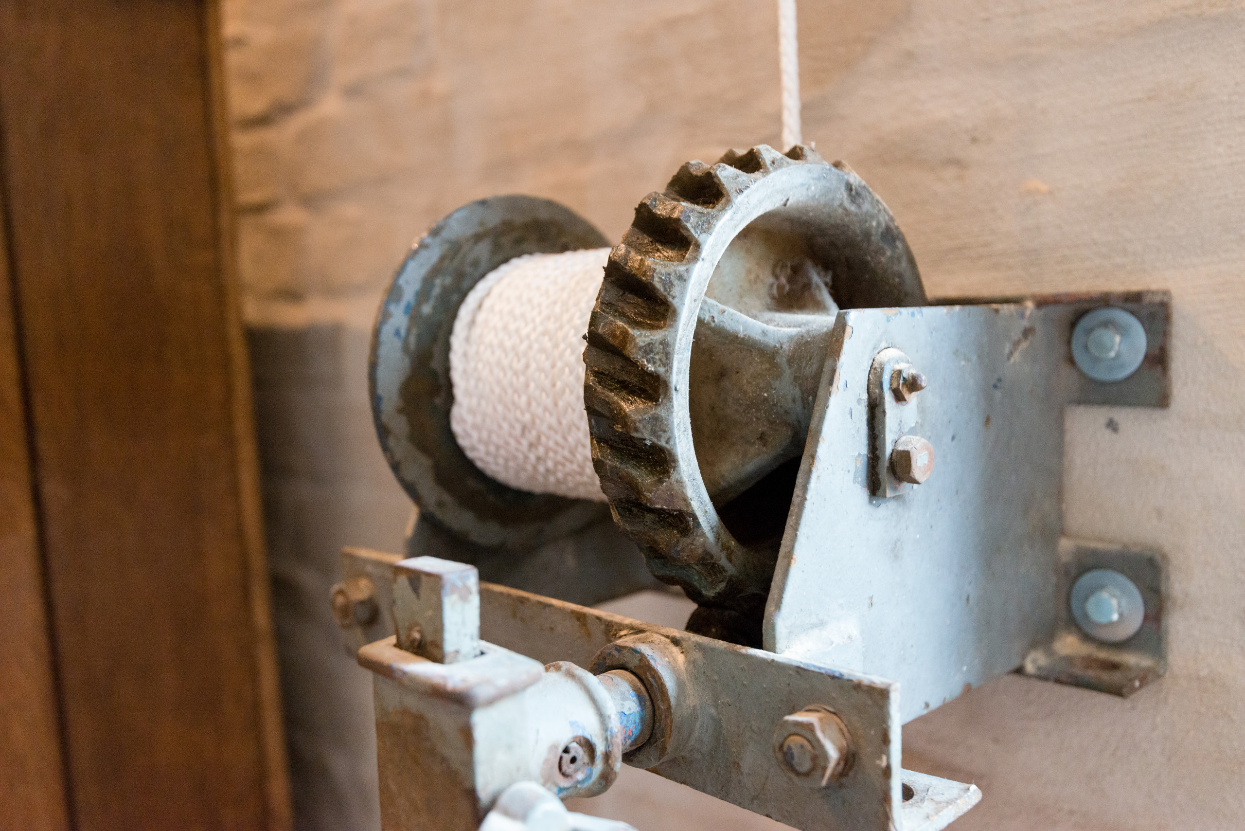 Un altro interessante dettaglio si trova sempre nella tromba delle scale: per sostituire le lampadine del lampadario appeso in alto, Stephanie lo ha attaccato a una corda che viene fatta scorrere con un vecchio dispositivo a manovella. «Adoro queste soluzioni davvero pratiche e d’impatto».