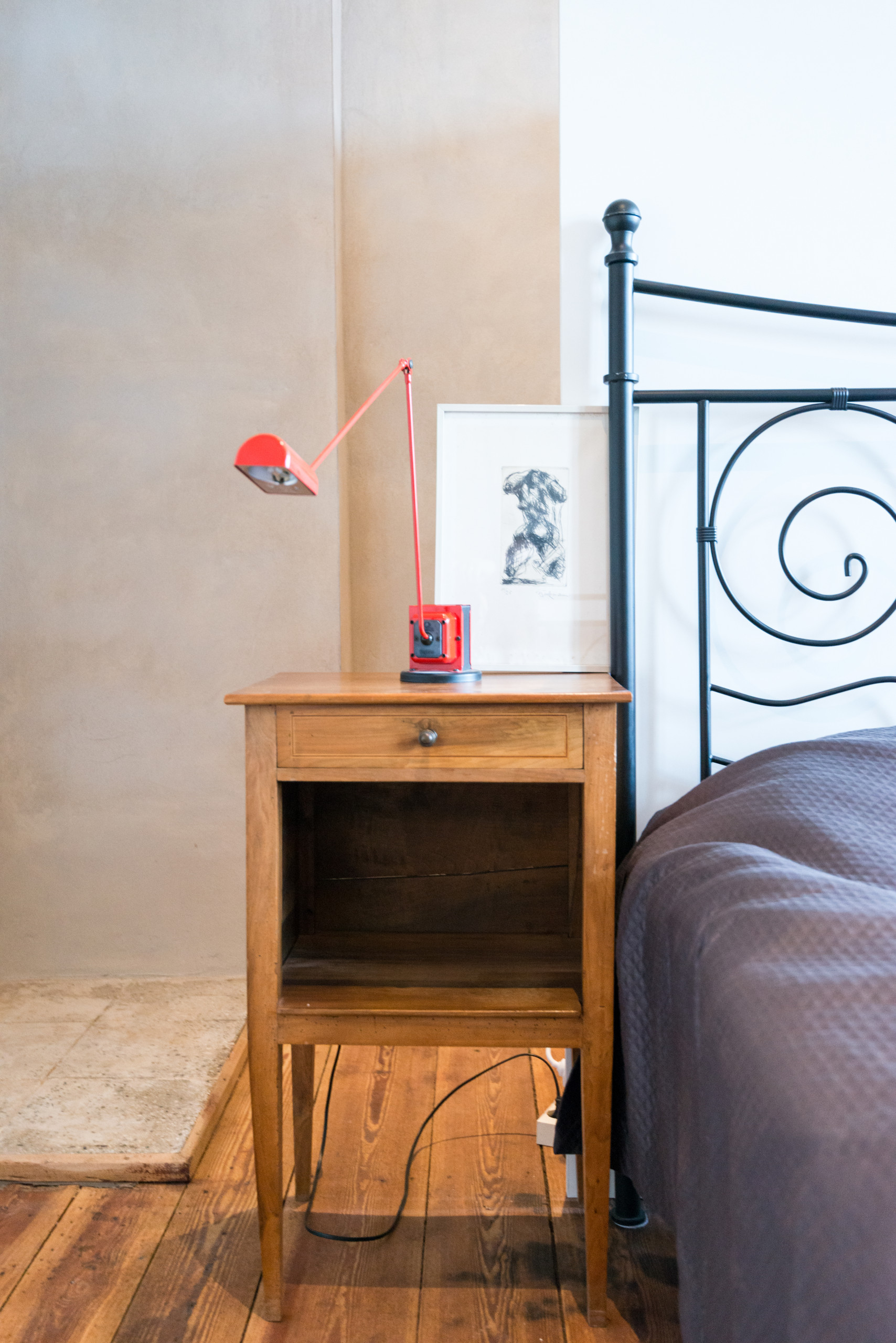 Prima, la pavimentazione in entrambe le stanze era dipinta in rosso sangue di bue. «Non mi piaceva, perciò l’ho fatta sabbiare. La leggera punta di rosso che le assi hanno conservato mi piace invece molto», precisa Stephanie.