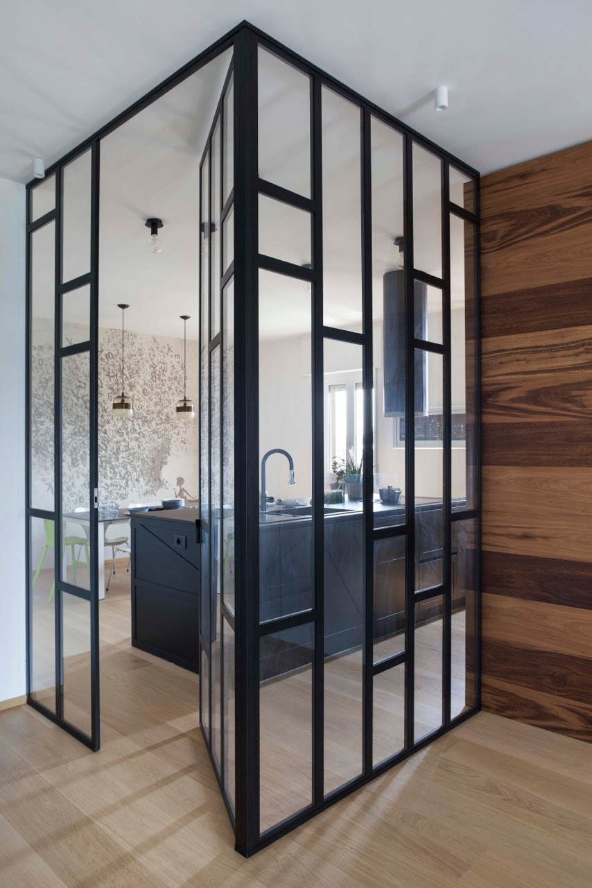 Open space o stanze separate? La soluzione intermedia è una parete vetrata che divide e unisce contemporaneamente
