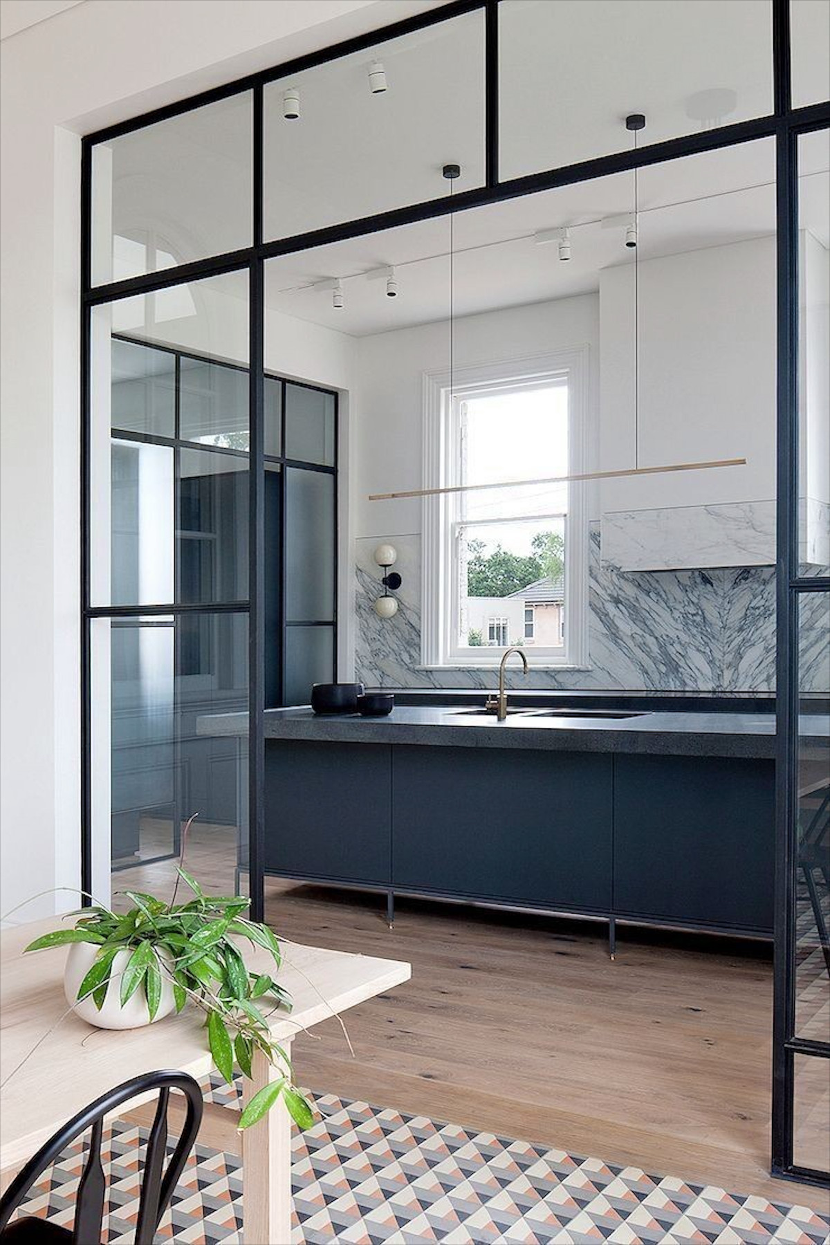 Questo progetto si discosta dalle ispirazioni precedenti perché troviamo una cucina che ha le sembianze di una scatola completamente trasparente. Il vetro si estende su due lati dal soffitto al pavimento e la cucina diventa quasi un’opera custodita da contemplare attraverso il vetro di una teca.