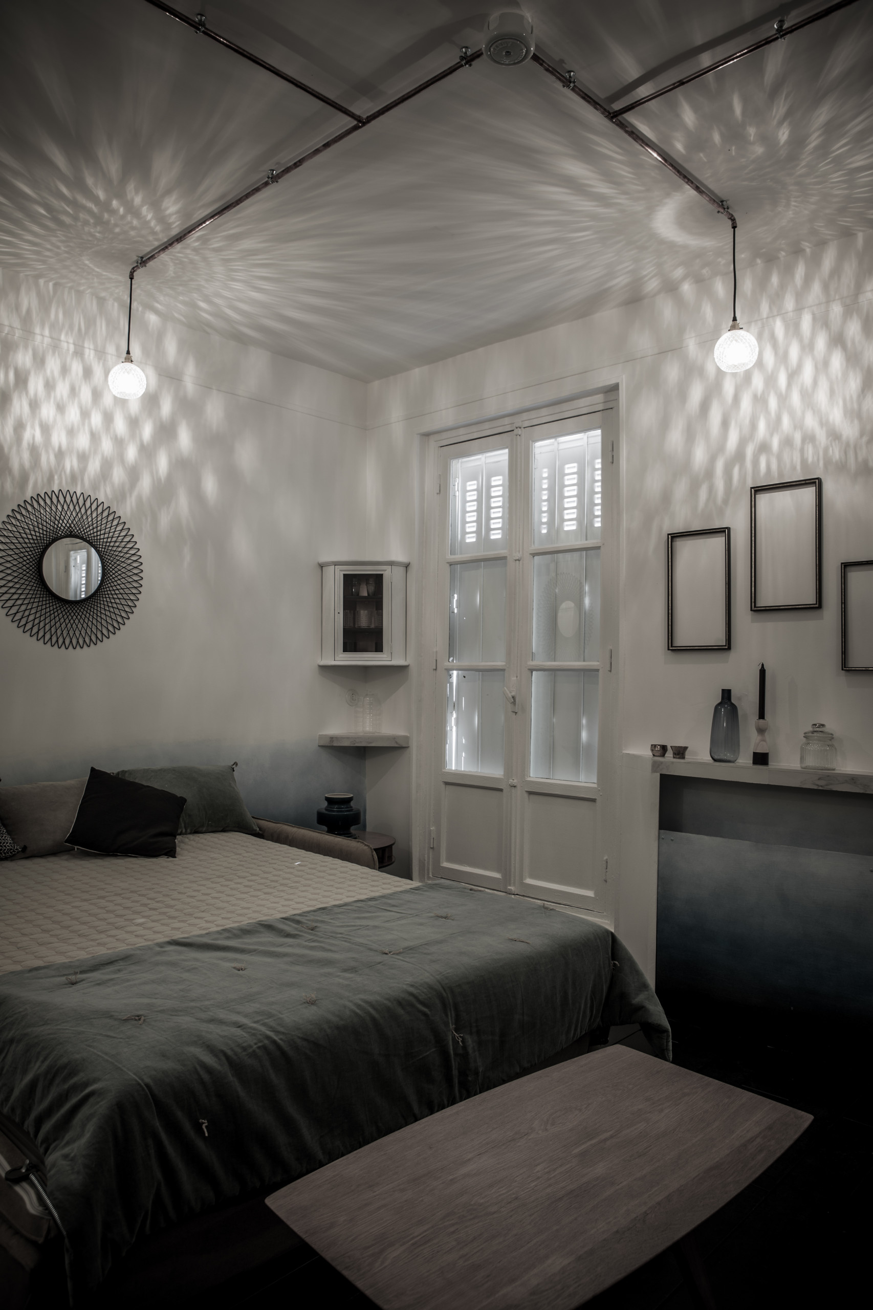 Di giorno questo sistema di illuminazione dall’anima in metallo conferisce una nota industriale che si addice magnificamente agli appartamenti che sorgono in riva al canale. Di notte, invece, crea un effetto surreale: le sfere di cristallo, infatti, proiettano giochi di luce sulle pareti dando vita a un’atmosfera incantata. Un accostamento ossimorico, al contempo grezzo e raffinato.