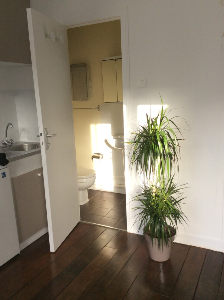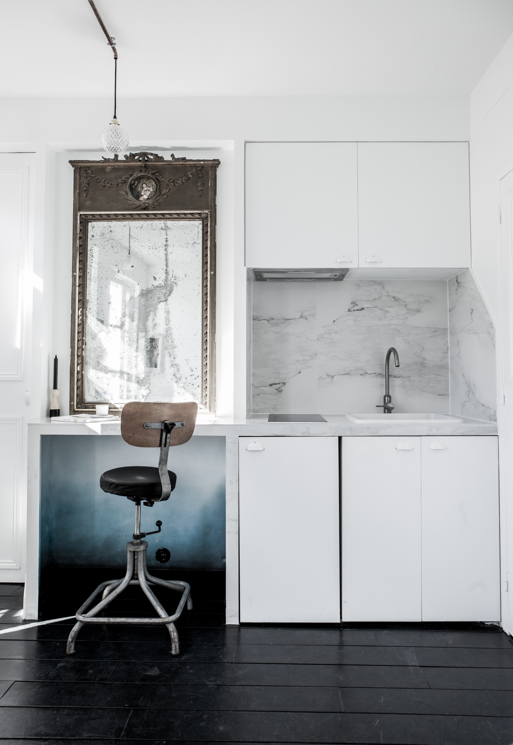 Secondo obiettivo dell’architetto: impegnarsi per restituire all’appartamento un elegante fascino parigino. Il monolocale, sebbene situato in un bell’immobile del 1900 edificato con pietre da taglio, non presenta alcun dettaglio o finitura in stile haussmaniano all’infuori del parquet.