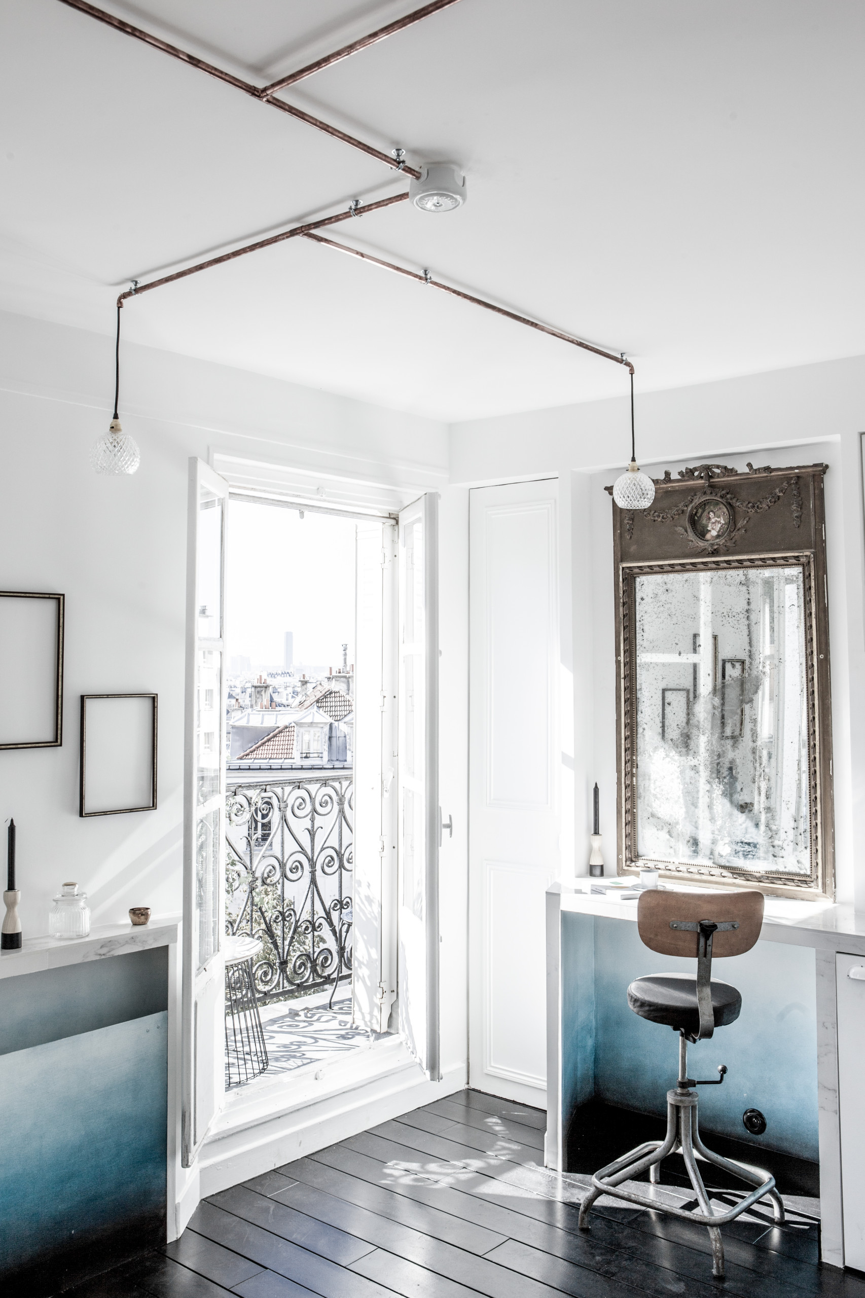 DOPO. Sin dalla sua prima visita all’appartamento, l’architetto d’interni Miriam Gassmann ha subito sentito vibrare la nota principale della melodia che secondo lei permea questo luogo. Si è chiesta: «E se provassimo a far emergere tutto il fascino di questo appartamento inondato di luce che domina dall’alto i tetti di Parigi come una delicata bolla cristallina?».