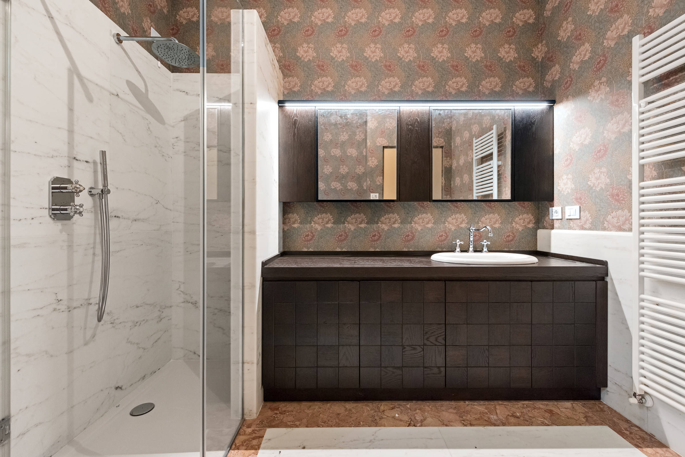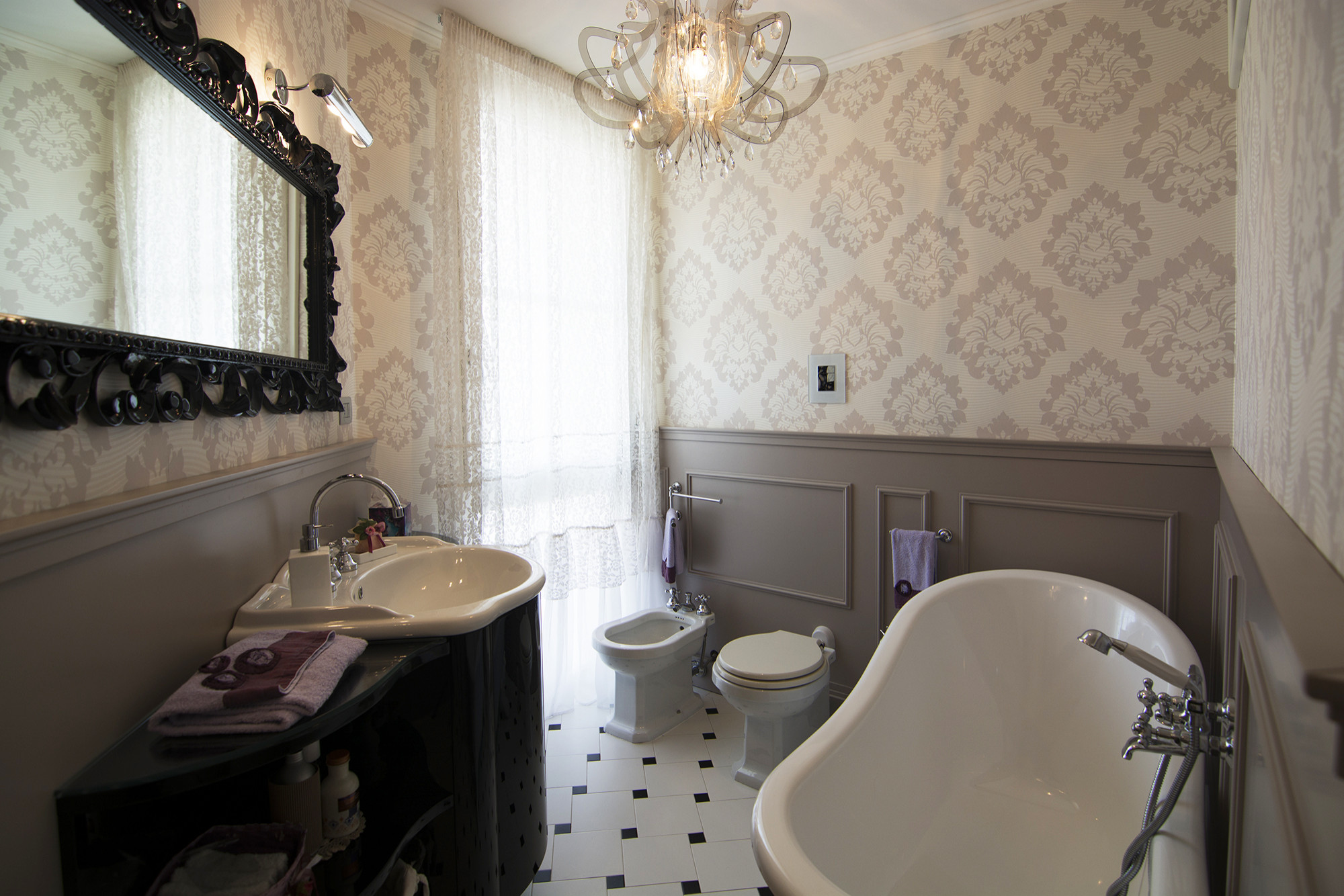 Il primo suggerimento che si può dare è di calibrare bene la fantasia scelta con la dimensione del bagno. Si tratta spesso di ambienti piccoli, vale quindi la pena valutare la possibilità di metterla solo su una delle pareti, o magari mezza parete, sopra una boiserie in legno, ad esempio.