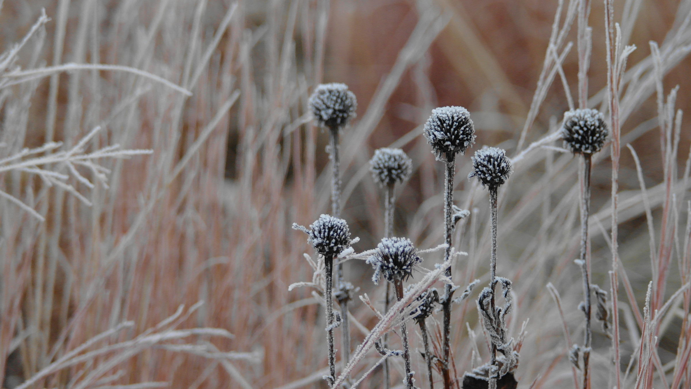 Oggi non c’è accostamento più raffinato che una massa di composite sfiorite, spruzzate dalla prima neve come zucchero a velo, e accompagnate dal vaporoso ondeggiare delle graminacee.