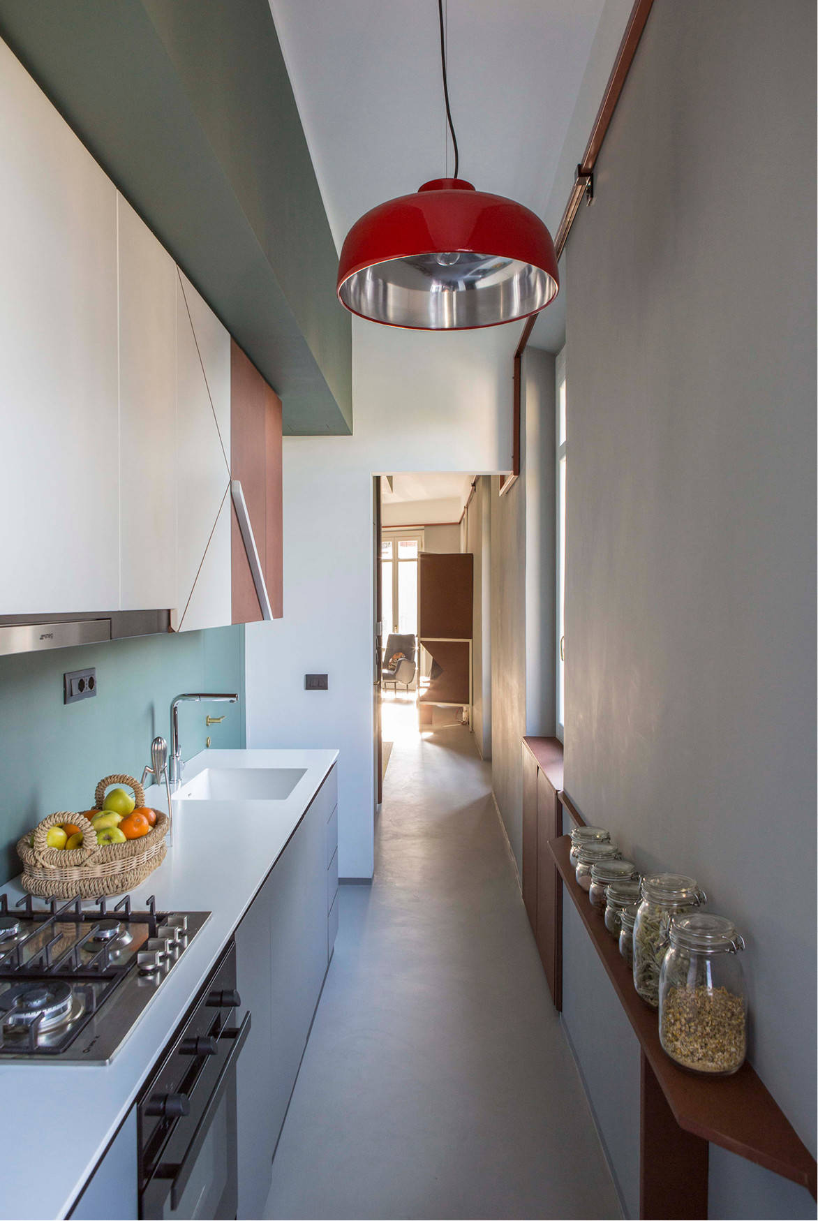 Davanti alla cucina lunga e stretta